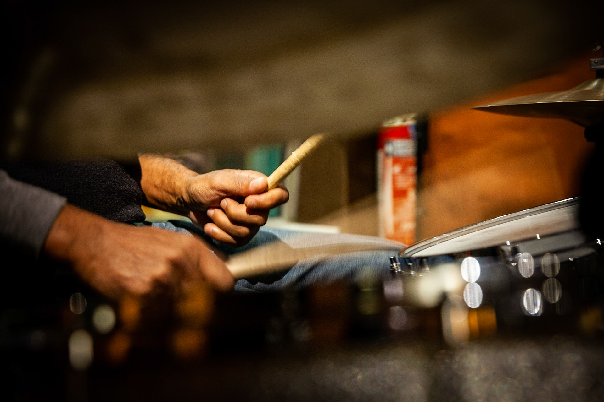 Séance d'enregistrement avec Manu Katche, pour le nouvel album de Pedro Kouyaté